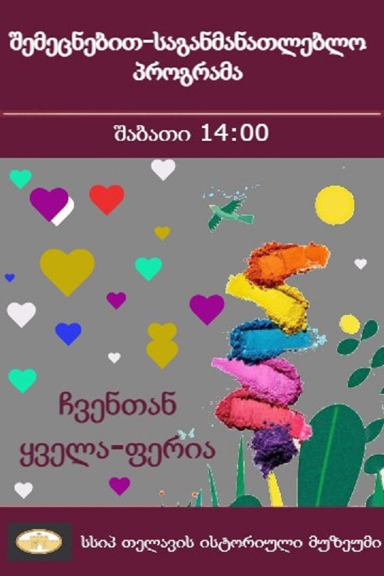 მოგახსენებთ, რომ 2025 წლის 7 ოქტომბრიდან თელავის ისტორიულ მუზეუმში, საგანმანათლებლო საქმიანობის პოლიტიკის ფარგლებში, საგანმანათლებლო პროგრამების განყოფილებამ შეიმუშავა ექვსი შემეცნებითი პროგრამა,მათ შორის ერთ-ერთი გახლავთ :