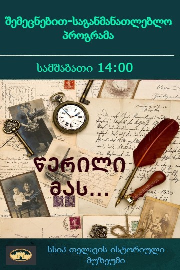 მოგახსენებთ, რომ 2025 წლის 7 ოქტომბრიდან თელავის ისტორიულ მუზეუმში, საგანმანათლებლო საქმიანობის პოლიტიკის ფარგლებში, საგანმანათლებლო პროგრამების განყოფილებამ შეიმუშავა ექვსი შემეცნებითი პროგრამა,მათ შორის ერთ-ერთი გახლავთ :